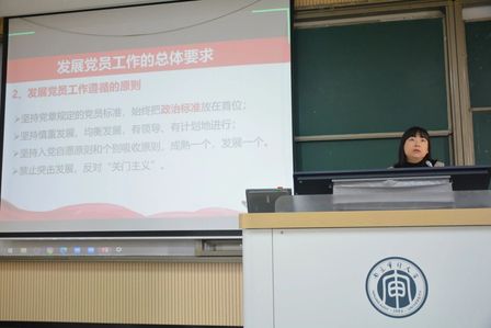 党委组织部李慧敏老师就“推优入党”工作进行深入讲解,从发展党员工作的总体要求、基本程序到主要材料的书写规范,全面梳理了入党各阶段的关键环节与注意事项,强化了学生骨干对党员发展工作的理性认识与程序把握,为规范开展“推优”工作奠定基础。